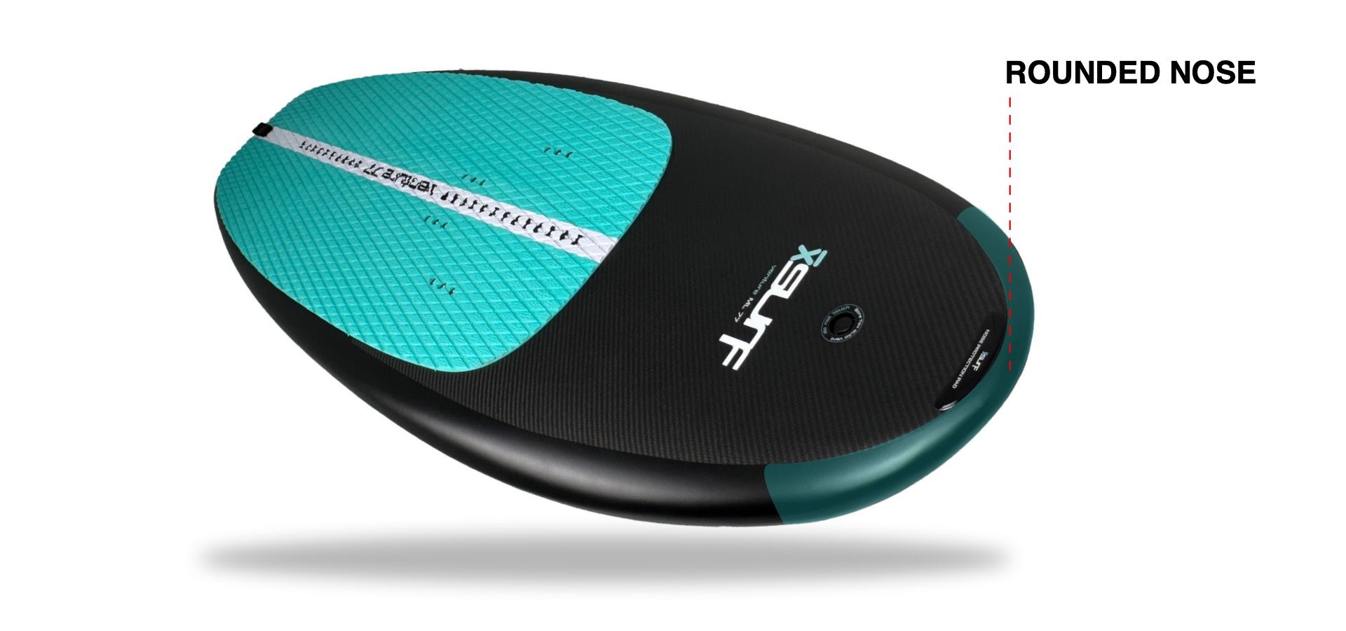 The classical ROUNDED NOSE is safer than a more pointed version in the event of crashing onto the board and offers both a longer waterline length (great for achieving take off speed) and less chance of catching during touch downs than a squared off version. Added volume helps the board to glide better at sub-foiling speeds and aids in volume distribution for stability.